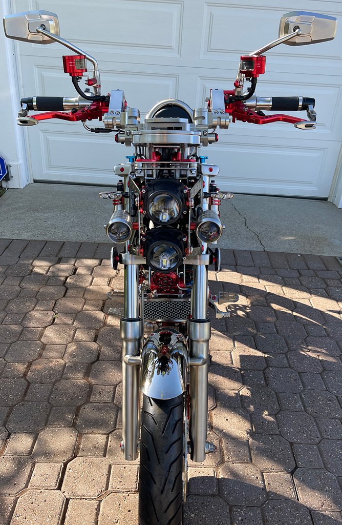It wasn’t until the bike was torn down and the painted finishes were removed, and the bare metal exposed that the theme for this bike was conceived. It would be an industrial style with polished and brushed – nickel plate, stainless steel and bare metal, topped off with anodized metal and held together with custom fasteners and hardware.